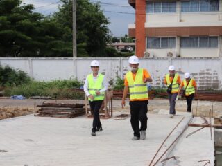 นายอรรถวัติ แก้วตา หัวหน้างานพัสดุ พรัอมด้วย ทีมงานเจ้าหน้าที่ วิทยาลัยชุมชนสมุทรสาคร ลงพื้นที่ติดตามความก้าวหน้างานก่อสร้างอาคารศูนย์วิทยบริการวิทยาลัยชุมชนสมุทรสาคร