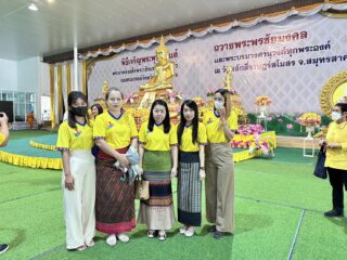 คณะบุคลากร วิทยาลัยชุมชนสมุทรสาคร เข้าร่วมพิธีเจริญพระพุทธมนต์เฉลิมพระเกียรติพระบาทสมเด็จพระเจ้าอยู่หัวฯ สมเด็จพระนางเจ้าสิริกิติ์ พระบรมราชินีนาถ พระบรมราชชนนีพันปีหลวง และสมเด็จพระนางเจ้าฯ พระบรมราชินี ณ วัดหลักสี่ราษฎร์สโมสร ต.ยกกระบัตร อ.บ้านแพ้ว จ.สมุทรสาคร