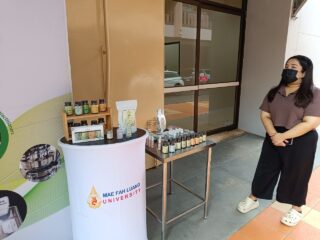 ดร.วีระสิทธิ์ พินจารัส หัวหน้าโครงการวิจัย และคณะวิจัย โครงการพัฒนาครีมขัดผิวจากเปลือกลำไยเหลือทิ้งพันธุ์พวงทองบ้านแพ้วจังหวัดสมุทรสาคร เข้าเยี่ยมชมและศึกษาดูงาน ศูนย์นวัตกรรมสมุนไพรครบวงจร มหาวิทยาลัยแม่ฟ้าหลวง “อาคารแปรรูปวัตถุดิบสมุนไพร มหาวิทยาลัยแม่ฟ้าหลวง” และ “โรงงานผลิตยาสมุนไพร มหาวิทยาลัยแม่ฟ้าหลวง” โดย พทป.นภัสวรรณ เผ่าจารูญ ผู้จัดการโรงงานผลิตยาสมุนไพร ศูนย์นวัตกรรมสมุนไพรครบวงจร และสรุปสาระและถอดองค์ความรู้เกี่ยวกับการศึกษาดูงาน ณ ศูนย์นวัตกรรมสมุนไพรครบวงจร มหาวิทยาลัยแม่ฟ้าหลวง ตำบลท่าสุด อำเภอเมือง จังหวัดเชียงราย