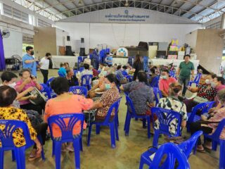 สำนักวิชาการ วิทยาลัยชุมชนสมุทรสาครลงพื้นที่บริการวิชาการเผยแพร่ความรู้ การทำสเปรย์พิมเสนน้ำ สำหรับใช้ในชีวิตประจำวัน และสำหรับจำหน่าย ให้กับ ผู้สูงอายุในพื้นที่ตำบลแคราย ณ ศาลาเอนกประสงค์ เทศบาลตำบลแคราย อ.กระทุ่มแบน