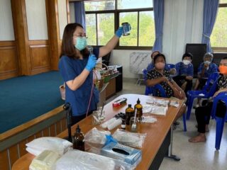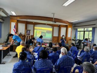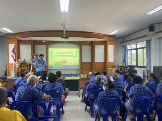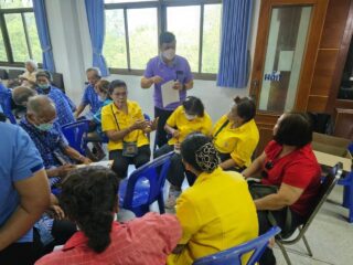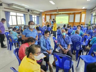 สำนักวิชาการ วิทยาลัยชุมชนสมุทรสาคร ลงพื้นที่บริการวิชาการเพื่อพัฒนาคุณภาพชีวิตให้กับผู้สูงอายุในพื้นที่ตำบลบางหญ้าแพรก ในกิจกรรมการทำสเปรย์พิมเสนน้ำ สำหรับใช้ในชีวิตประจำวันและสำหรับจำหน่ายเป็นของชำร่วย ณ ห้องประชุมเทศบาลตำบลบางหญ้าแพรก อ.เมือง