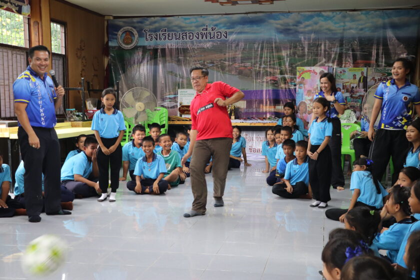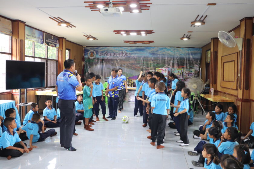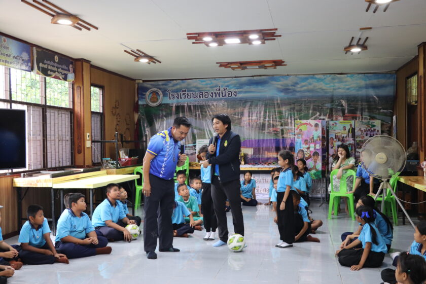 วันที่ 27 สิงหาคม 2568 ชมรม TO BE NUMBER ONE วิทยาลัยชุมชนสมุทรสาคร และกลุ่มงานกิจการนักศึกษา นำโดย ดร.ณรงค์ศักดิ์ พูลเงิน ผู้อำนวยการศูนย์ส่งเสริมการเรียนรู้ตลอดชีวิต วิจัย และนวัตกรรม พร้อมคณะทำงาน ลงพื้นที่ “แบ่งปัญรอยยิ้ม” มอบอุปกรณ์การเรียน และอุปกรณ์กีฬา ให้กับนักเรียน ระดับชั้น ป. 1 – ป.6 จำนวน 80 คน ภายใต้กิจกรรมทำดีเพื่อสังคม TO BE NUMBER ONE และกิจกรรม One goal No Drugs ณ โรงเรียนสองพี่น้อง อำเภอสองพี่น้อง จังหวัดสุพรรบุรี