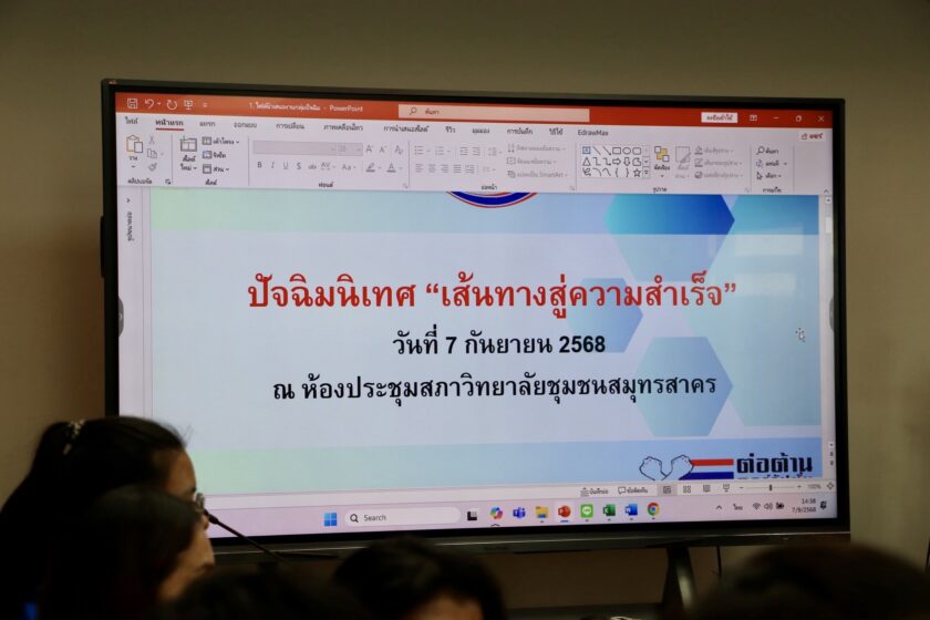 วิทยาลัยชุมชนสมุทรสาคร จัดกิจกรรมพัฒนาศักยภาพนักศึกษาวิทยาลัยชุมชนสมุทรสาคร “ประชุมเชิงปฎิบัติการ คัดเลือกแกนนำนักศึกษา” โดยมี ดร.ณรงค์ศักดิ์ พูลเงิน เป็นประธาน เพื่อชี้แจงกฎระเบียบและข้อบังคับให้กับนักศึกษา พร้อมกับได้ดำเนินการเลือกตั้งนายกสโมสรนักศึกษา ประจำปีการศึกษา 2568 และขอแสดงความยินดีกับ นางสาวจิณัฐตา สังข์ทอง ที่ได้รับการเลือกตั้งให้ดำรงตำแหน่งนายกสโมสรนักศึกษา ประจำปีการศึกษา 2568 ณ ห้องประชุมสภา วิทยาลัยชุมชนสมุทรสาคร