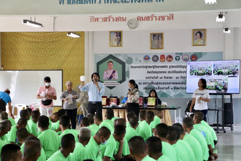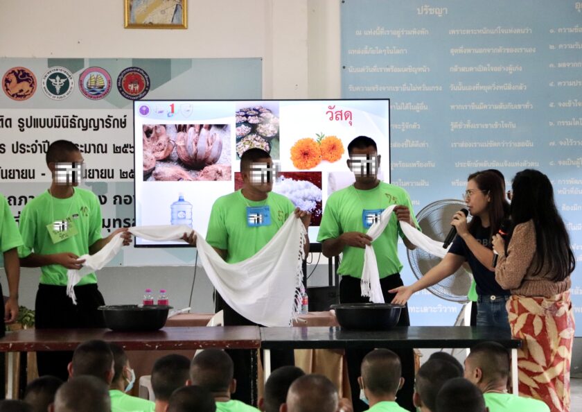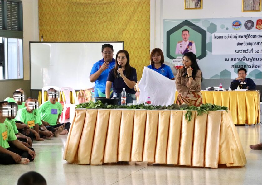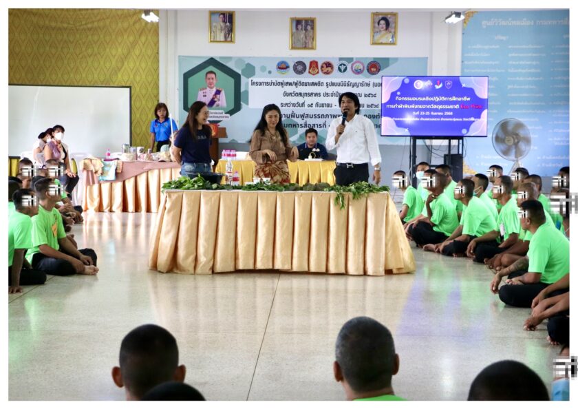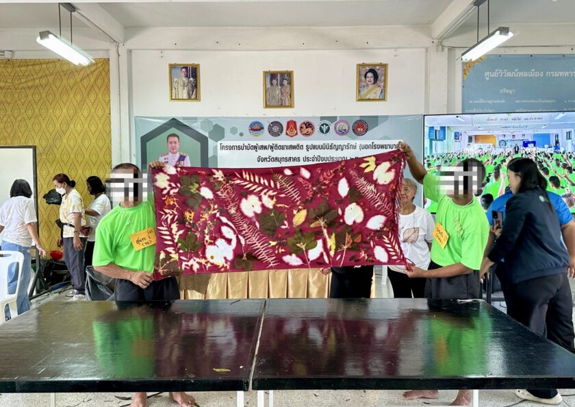 วันที่ 23 – 25 กันยายน 2568 วิทยาลัยชุมชนสมุทรสาคร ในฐานะเครือข่าย TO BE NUMBER ONE จังหวัดสมุทรสาคร นำโดย ดร.ณรงค์ศักดิ์ พูลเงิน พร้อมด้วยคณะทำงาน เข้ามอบความรู้และทำกิจกรรมฝึกอาชีพในหัวข้อ “ฝึกอบรมเชิงปฎิบัติการทำผ้าพิมพ์ลายจากวัสดุธรรมชาติ Eco – Print” ภายใต้โครงการบำบัดผู้เสพ/ผู้ติดยาเสพติด รูปแบบมินิธัญญารักษ์ (นอกโรงพยาบาล) จังหวัดสมุทรสาคร ประจำปีงบประมาณ พ.ศ. 2568 เพื่อรองรับผู้เสพยาเสพติดจากการปฎิบัติกวาดล้างยาเสพติด “No Drugs No Dealers” โดยมีผู้เสพ/ผู้ติดยาเสพติด เข้าสู่กระบวนการบำบัด ทั้งสิ้น 200 คน โครงการดังกล่าวจัดขึ้นโดยสำนักงานสาธารณสุขจังหวัดสมุทรสาคร ณ กรมทหารสื่อสารที่ 1 ค่ายกำแพงเพชรอัครโยธิน อำเภอกระทุ่มแบน จังหวัดสมุทรสาคร