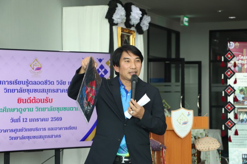 ศูนย์ส่งเสริมการเรียนรู้ตลอดชีวิต วิจัย และนวัตกรรม จัดกิจกรรมประชุมเชิงปฏิบัติการพัฒนาผลิตภัณฑ์และสร้างมูลค่าเพิ่มจากต้นทุนทางวัฒนธรรม โดยมี วิทยาลัยชุมชนตาก เข้าร่วมกิจกรรม และศึกษาดูงาน อัตลักษณ์ทางวัฒนธรรมของชาวไทยทรงดำ ณ อาคารศูนย์วิทยบริการและอาคารเรียน วิทยาลัยชุมชนสมุทรสาคร