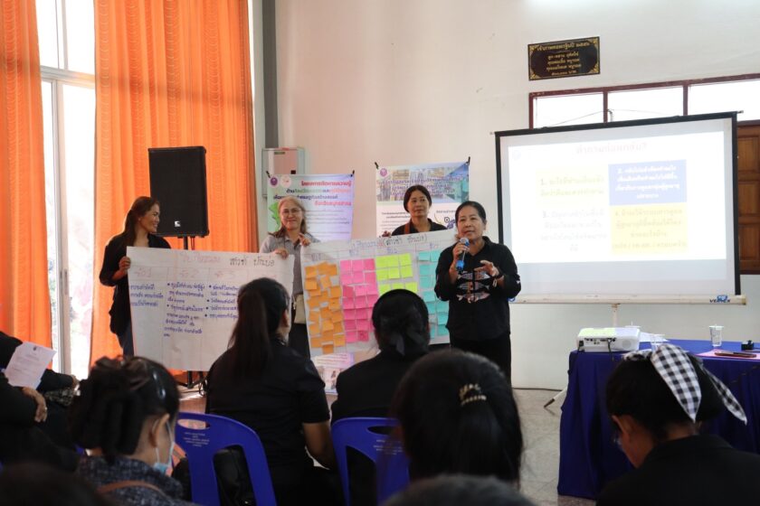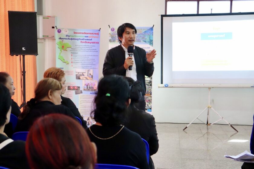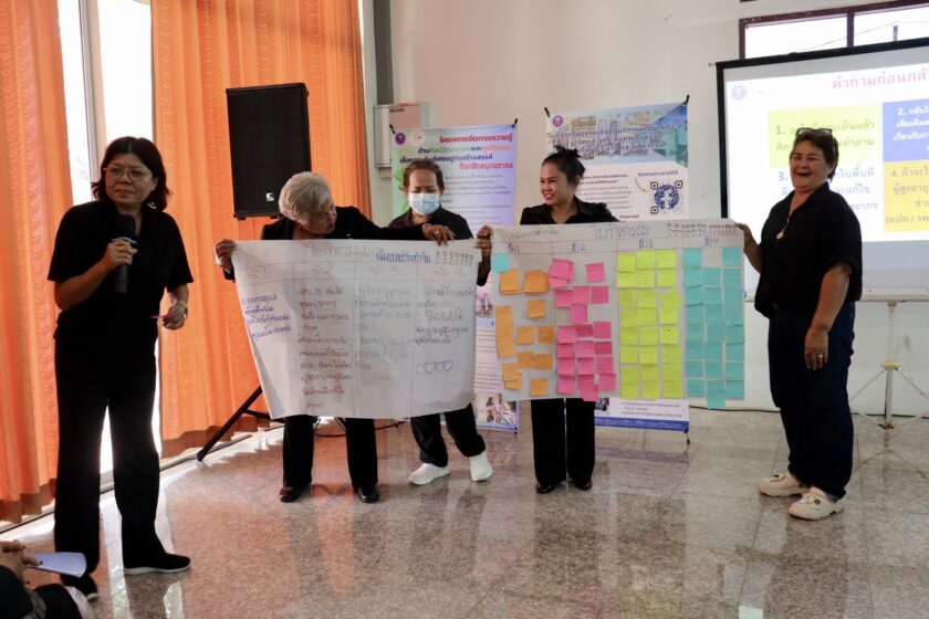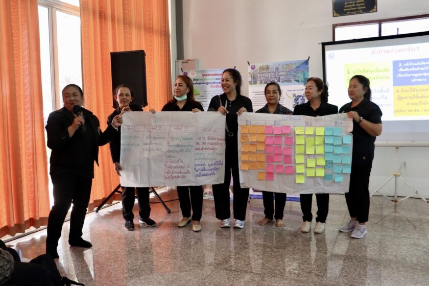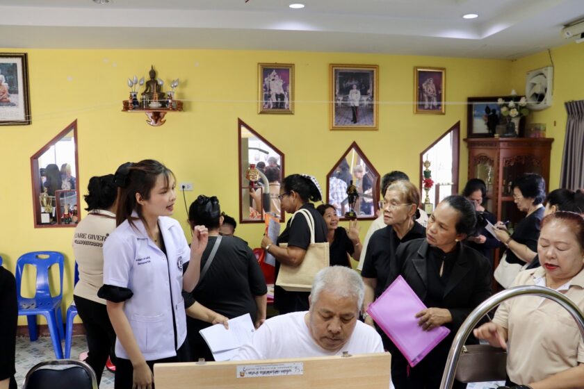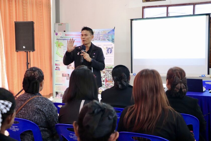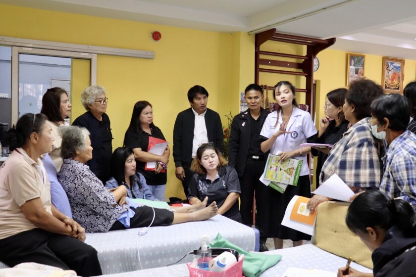 ศูนย์ส่งเสริมการเรียนรู้ตลอดชีวิต วิจัย และนวัตกรรม นำโดย ดร.ณรงค์ศักดิ์ พูลเงิน ผู้อำนวยการศูนย์ส่งเสริมการเรียนรู้ตลอดชีวิต วิจัย และนวัตกรรม ดร.สุณัฐชา กุณาศล รองผู้อำนวยการศูนย์ส่งเสริมการเรียนรู้ตลอดชีวิต วิจัย และนวัตกรรม และคณะทำงาน เข้าจัดกิจกรรมอบรมเชิงปฎิบัติการพัฒนาทักษะอาชีพและยกระดับคุณภาพชีวิตกลุ่มคนเปราะบาง และผู้ที่ยากจน ภายใต้โครงการการพัฒนาเชิงพื้นที่เพื่อยกระดับคุณภาพชีวิตครัวเรือนยากจนในพื้นที่จัดการศึกษาของวิทยาลัยชุมชนสมุทรสาคร โดยมีรูปแบบกิจกรรม อบรมเชิงปฏิบัติการพัฒนาเชิงพื้นที่เพื่อยกระดับคุณภาพชีวิตครัวเรือนเปราะบาง และยากจน หัวข้อนวัตกรรมการดูแลและการยกระดับคุณภาพชีวิตกลุ่มผู้สูงอายุ และคนพิการ และมีผู้เข้าร่วมมากกว่า 90 คน ณ ศูนย์ฟื้นฟูสมรรถนะผู้สูงอายุ และคนพิการ เทศบาลตำบลบางสีทอง อำเภอบางกรวย จังหวัดนนทบุรี