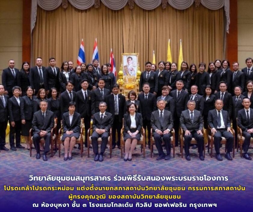 วันที่ ๒๑ เมษายน ๒๕๖๙ วิทยาลัยชุมชนสมุทรสาคร โดยตัวแทนคณะกรรมการสภาวิทยาลัยสมุทรสาคร นายเผด็จ เปล่งปลั่ง ผู้อำนวยการวิทยาลัยชุมชนสมุทรสาคร และบุคลากร เข้าร่วมพิธีรับสนองพระบรมราชโองการโปรดเกล้าโปรดกระหม่อม แต่งตั้งนายกสภาสถาบันวิทยาลัยชุมชน กรรมการสภาสถาบันผู้ทรงคุณวุฒิ ของสถาบันวิทยาลัยชุมชน ณ ห้องบุหงา ชั้น ๓ โรงแรมโกลเด้น ทิวลิป ซอฟเฟอริน กรุงเทพฯ