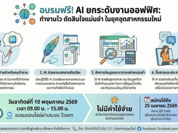 อบรมฟรี! UPSKILL AI ยกระดับงานออฟฟิศ วิทยาลัยชุมชนสมุทร […]